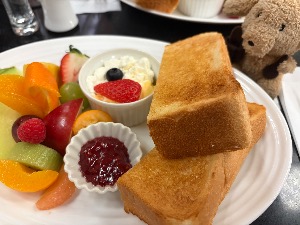 このトーストめちゃくちゃに美味しいし、フルーツも甘くて美味しかった。