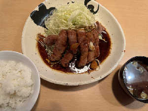 こんなにうまいトンテキ初めて。ソースがうまいのはもちろん肉がサクッと切れる。キャベツ1回お代わり。
