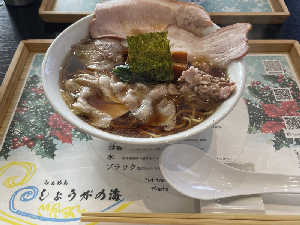 スープは濃すぎず黒胡椒が効いていておいしかった! チャーシューが香ばしくしっとりしていておいしかった