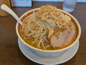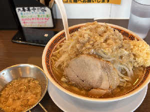 なんとか完食 野菜普通、ニンニク少なめ、脂普通 麺少なめか野菜少なめが適量か ニンニクは普通でもよい