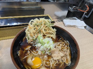 自家製麺に自家製天ぷら、味染みの肉。 汁もたまらんうまさ。立ち食い蕎麦の領域を完全に超えてる。