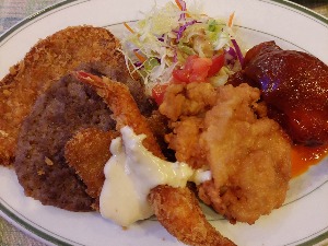 名物黄色いカレー。 あっさり味でお好みでソースをかけて食す。ピーマンは沖縄カレーの特徴らしい。
