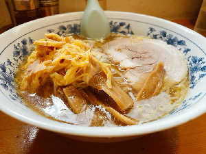 鶏豚魚介昆布野菜な感じのスープ 、優しい醤油のカエシ、歯応えしっかりの中細ストレートにピリ辛葱最高😊
