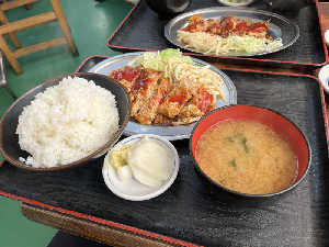 とんぺい焼と冷蔵庫から好きなおかず一品が選べるお得な定食 レモンサワーと一緒にどうぞ 900円