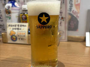 本日のイチオシ 生中とともに。 刺身定食とか本鮪ぶつと鰯たたき定食と激しく悩んだが、イチオシにした。