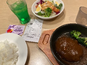 夜だけど頼めた🚩チーズバンバーグ美味~