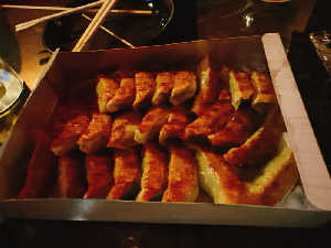 ご近所「よしこ」のテイクアウトをスタッフの方に購入していただける。ビールが進む。