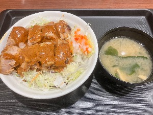松屋名物ごろチキとピーナッツバター煮込みのクリーミーソースが美味しいトレーニーサ飯に。