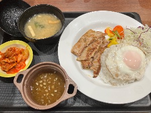 期間限定魚醤を効かせたソースかけ豚肉と目玉焼きでご飯ススムアジアンメニュー