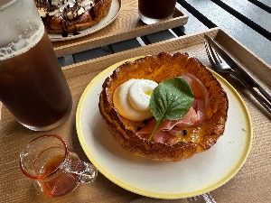 ダッチパンケーキ(生ハム、ブッラータ、メイプルシロップ)