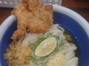 千葉県産サバきたて鯖天と鶏天の大根おろししょうゆうどん(冷)。うまいうまいうまい。