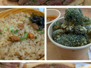 ステーキサンド倍盛り、うに飯、ローストビーフサンドとか