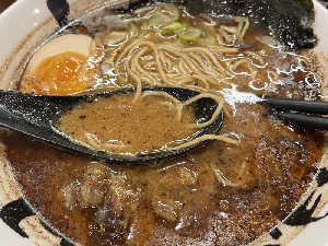 黒マー油が良い風味出してる。熊本ラーメンだから、たむかえサウナ行きたくなっちゃいました。