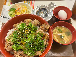 ねぎ玉牛カルビ焼肉丼 特盛 サラダセット