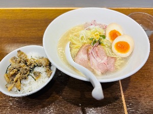美味でしたが、夫の食べていた貝だしらぁ麺と交換😋
