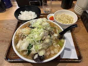→大盛り、ネギ増し、半ライスセット、極太麺