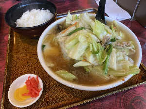 ラードが強めの野菜炒めがたっぷり乗ってボリューミー😍