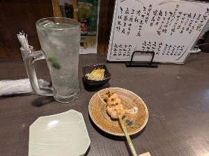 プリップリの歯ごたえのある身、親鶏の硬さと旨味。素晴らしい焼鳥だなぁ。もうちょい食いたかった。