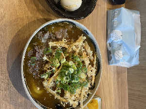 うどん麺が独特で餅を食べてる感じ 揚げたての天ぷら入りもありがたい