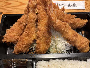 娘が帰ってきてて、持ち帰りでー エビフライ5本!腹パン! 北海道のエビ美味い笑
