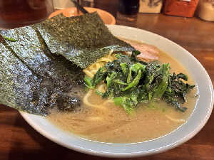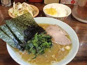 濃さ普通、油少なめ、麺硬めの味付けたまごトッピング。生姜やニンニク、唐辛子のトッピングも最高