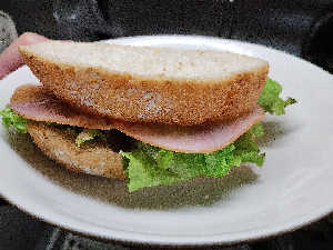 トップバリュのカンパーニュ+伊藤ハム+益城産のレタス