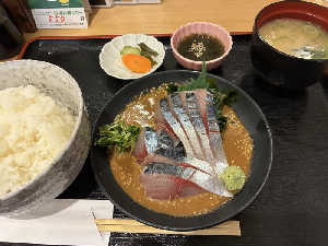 対馬で獲れた鯖にごまだれが合う、美味い!