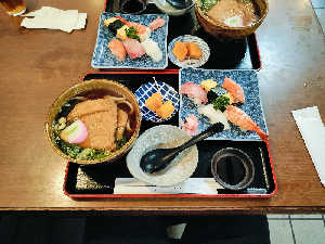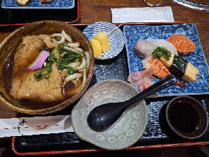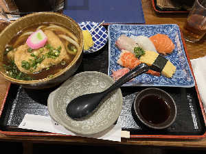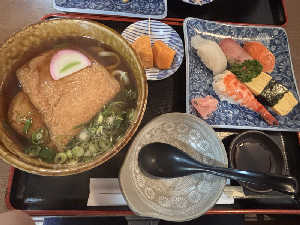 うどんの出汁がサウナ後の身体に染み渡る〜 お寿司もうまかったです!