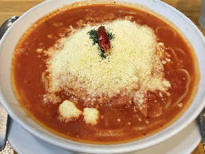 赤唐トマトソースフライドガーリック乗せ(乾麺 大)