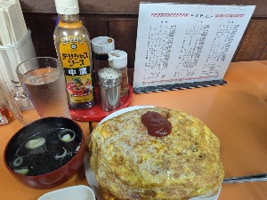 昨日もオムライス食ったな…むさしやとは別物、角チャーシューがゴロゴロ入った中華オムライス。