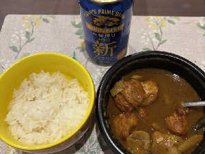 久々に腹一杯食べようと思い浮かんだのがCoCo壱でした🤣 テイクアウト🥡 約2ヶ月ぶりのビール解禁🍺