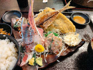 ボリュームあります。 美味しいです。最後はなめろうを出汁茶漬けに