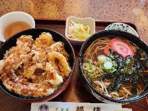 海老天美味い! 写ってないけど、ミニ天丼も食べたのでおなかパンパン笑
