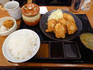 から揚げおいしい。しかも塩辛、大根の漬物食べ放題。本音を言えば塩辛を食べに来ています。