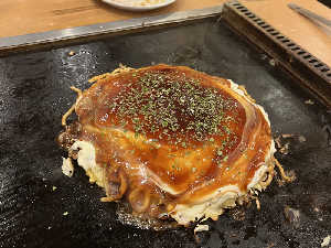 初めて大阪でお好み焼き食べれた‼️ ちょっと焦げてたかな笑
