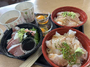 欲張ってブリ丼まで頼んでもうた🤣 無料のタマネギスープついてた❗️ 寒かったから身体あったまる〜