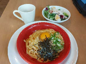 サラダとドリンクバーがセットでお得。肌寒いのでココアばかり飲んでました😋