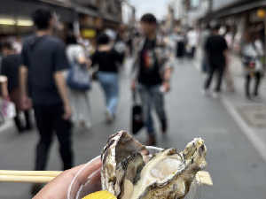 おかげ横丁にて特大サイズ岩牡蠣を頂きました。 舌から脳へ“旨み“の衝撃が突き抜けました❗️