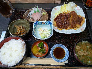 とんかつがぶ厚くボリューミーで腹パンパン。 1400円。
