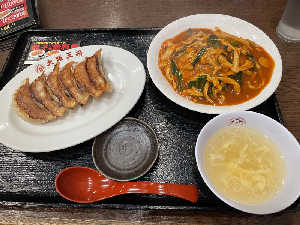 冷麺まつりは激混みで座れず、急遽、大阪王将の基本料理に変更です。