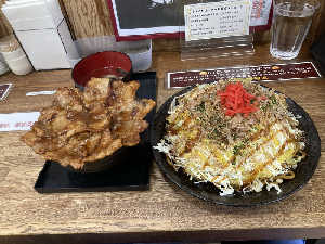 →焼きまんじゅうの名店。 →ぶた丼🐖は今回味噌味、これも美味しくて焼きそばと相性抜群🤤👍
