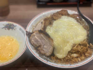 麺がバキバキ、野菜シャッキリ、ニンニクアブラはしっかり味付け、カネシきりっと非乳化スープ