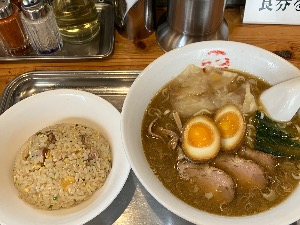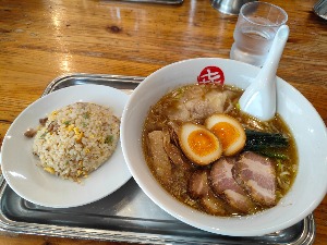 私の中でラーメン屋の最強セット。ラーメンもチャーハンも旨々。ラーメンは一味、チャーハンは胡椒が合う。