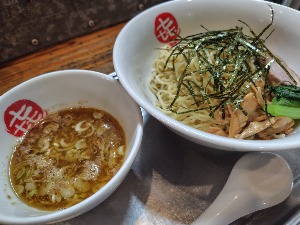 つけそばフェア限定の特濃(煮干し脂濃いめ)。メチャ旨! 8月末までなのでもう一回は食べときたい。