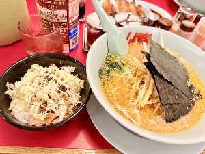 コクと甘みの味噌スープにシャキシャキニラもやし、生姜のパンチがたまらん!まさにサ飯!期間限定らしい。
