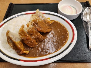 施設より徒歩10秒、小腹が空いたときは餃子カレーに限ります