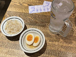 サウナのあとの生ビール。美味しい。つまみを考えつつあっという間に終わる