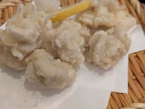 牡蠣の天ぷら、アジフライ withあぶりがっこタルタルも食べました。美味しかったー🥰