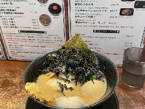 島の出だけあり、濃厚な魚介の風味がたまらない。そこに超いい香りの島海苔。いい感じの辛さ。というか辛い