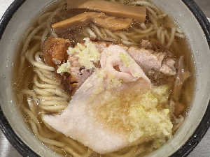お出汁が効いた澄んだスープで、大阪ならでは。全粒粉ストレート中太麺はツルツルシコシコ。厚切焼豚最高😋